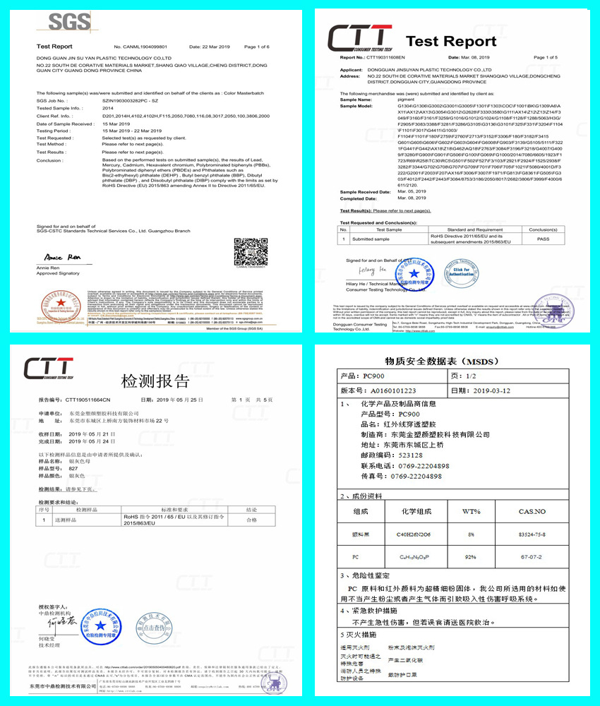 8.通用色母:通用色母相对来说比较方便,但存在问题多。本公司技术人员建议用户选用专用色母。